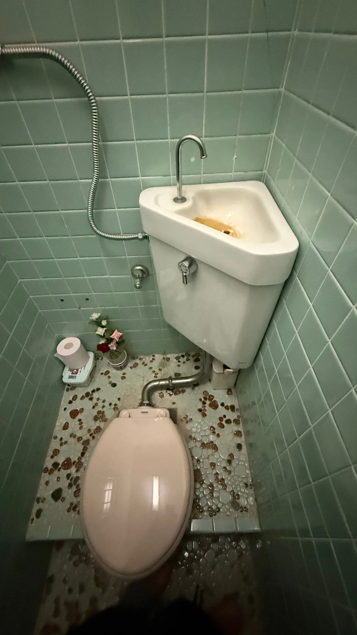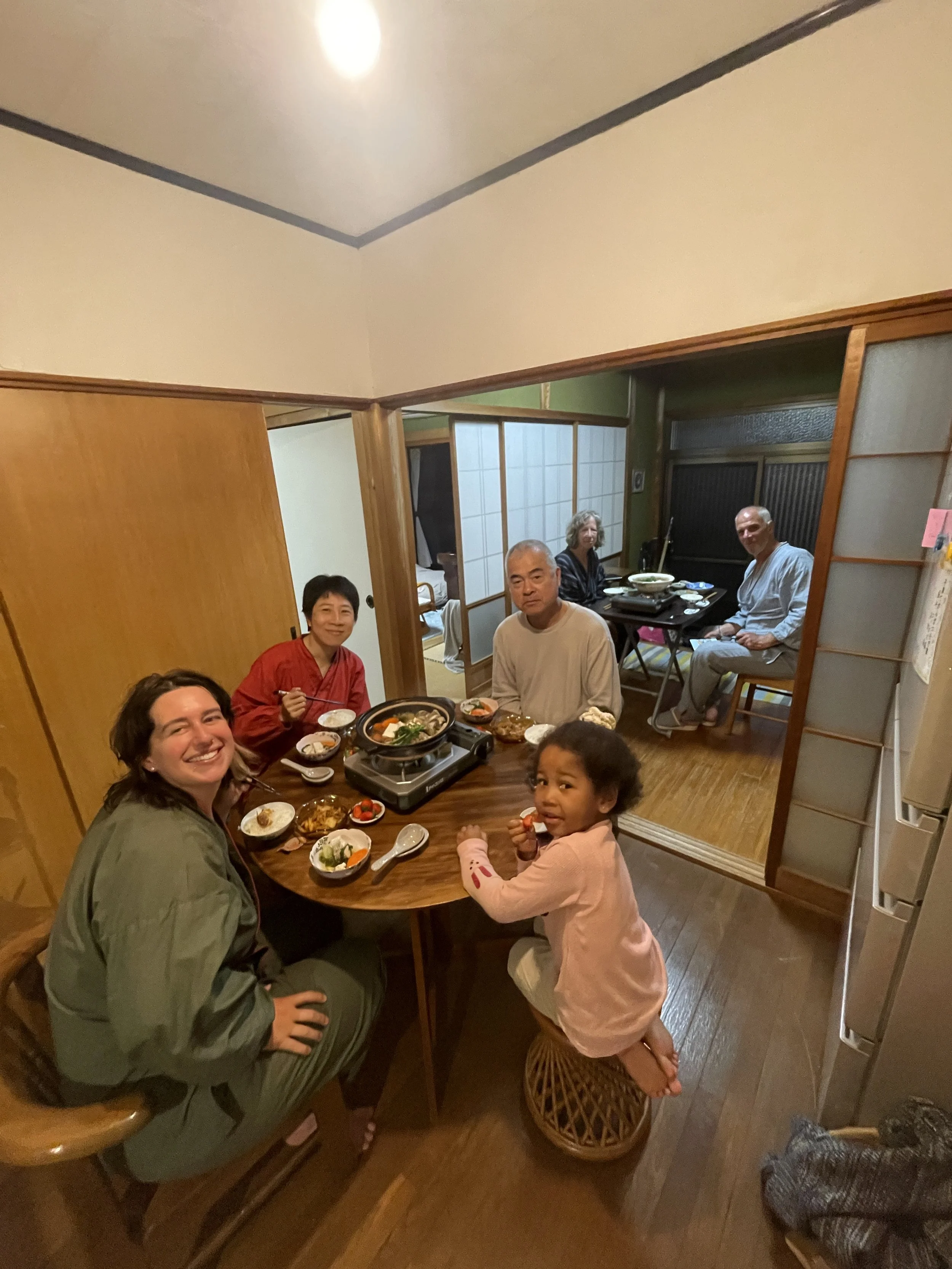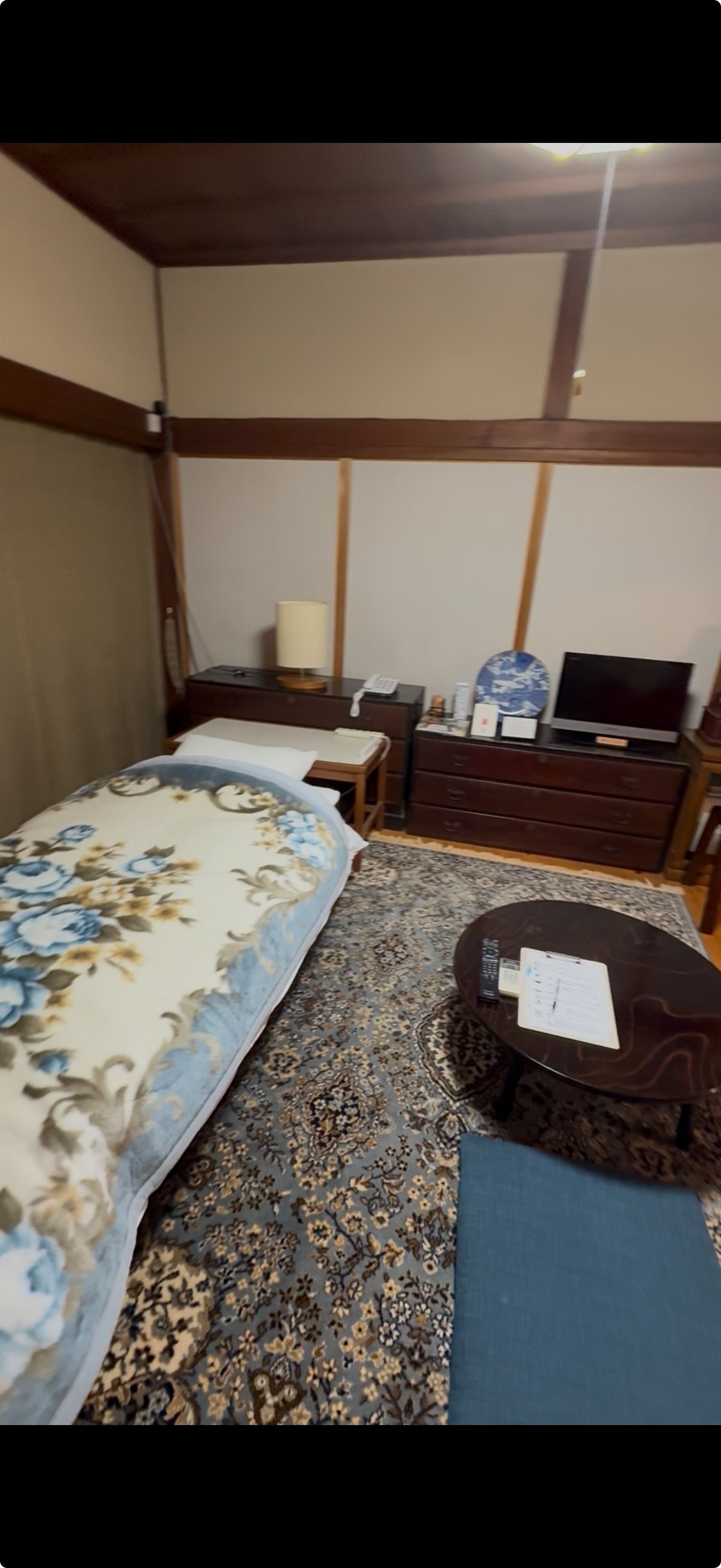 Privet toilet with shared bath downstairs. Large clean rooms. Host is nice and even gives you a little snack for next day. Meals include fresh fish and a hotpot. Also this host let me store my extra luggage here for my entire journey!